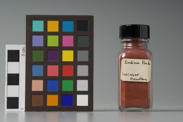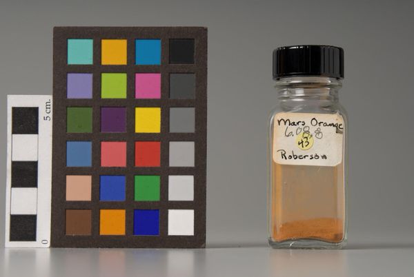 Curator: Here we have "O Bitumen 1", a pigment manufactured by Winsor & Newton, likely around 1927. Editor: It's so unassuming, yet it holds a world of potential, like a tiny, bottled galaxy waiting to explode onto a canvas. Curator: Indeed. Bitumen, historically derived from asphalt, presents intriguing textural possibilities, allowing for deep, glossy shadows but alas, known for its archival instability, and thus, prone to cracking. Editor: The label is so cool, it gives me a sense of history, an artisan's touch, and also a reminder of time's passage. Curator: The chromatic scale is useful when analyzing the value of pigment, however I will always see Bitumen's inherent flaws. Editor: Ah, but perhaps those imperfections are what make it beautiful. It has certainly given me a new perspective.