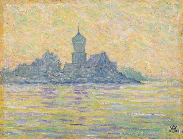 Paul Signac made this oil on canvas painting, Antibes, the towers, sometime in his lifetime. Signac's application of paint is so fascinating here! This isn't just a picture; it's a field of tiny, deliberate strokes, each one a little decision, a little experiment. Look closely, and you’ll see the way he builds up form and light with these little dabs of pure color. The materiality of this work is just lovely, the surface vibrates. He’s not trying to hide the process but reveling in it, inviting us to see how the image comes together, bit by bit. I'm drawn to the way the water shimmers, each stroke seems to capture a fleeting moment of light and reflection. It's almost like looking at a mosaic or some kind of textile. This feels connected to the pointillist experiments of his friend Seurat, but Signac brings such a breezy, bright, Mediterranean feel that is all his own. It's a reminder that art is always a conversation, a back-and-forth between artists and ideas.