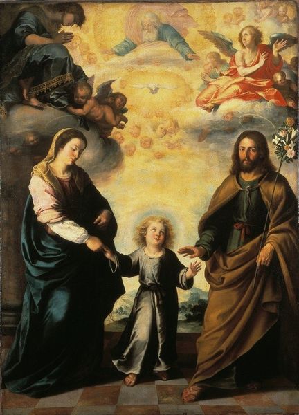 Bartolomé Estebán Murillo painted ‘The Infant Christ Distributing Bread To The Pilgrims’ in oil on canvas at an unknown date. But it was most likely painted in Seville, Spain, in the mid-17th century. Murillo was one of the most celebrated painters of the Spanish Baroque. His work often served the Counter-Reformation’s agenda, using sentimental and idealized imagery to reinforce Catholic doctrine. Here, the painting depicts a vision of the Virgin Mary and the infant Christ child, who miraculously provides bread to a group of pilgrims. During this period, Seville was a major port city facing considerable social inequality. Religious institutions, like the Catholic Church, played a crucial role in alleviating poverty through charitable acts. Murillo, through his art, actively contributed to this effort by reinforcing the Church’s teachings and encouraging piety among the faithful. To gain a deeper understanding of Murillo’s paintings, one might examine archival records from the Catholic Church, as well as the artist’s biography. This would give you more insight into the social and institutional context in which he worked.