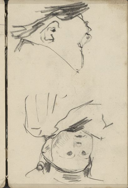 George Hendrik Breitner made this sketch of a woman's head, a cat, and two wine glasses in the Netherlands, most likely in the late 19th or early 20th century. Working in Amsterdam, Breitner was known for his depictions of working-class life and the urban environment. This informal sketch gives us an insight into the artist's process, showing him exploring different subjects and compositions. It's a glimpse into his everyday life, including the comforts and pleasures of wine and companionship. The sketch can be read in the context of the Realist movement which sought to depict the world as it was, without idealization. Breitner was part of a generation of artists who were challenging the established norms of the art world and exploring new ways of representing modern life. To understand this sketch fully, we need to consider the social and cultural context in which it was made, consulting contemporary newspapers and magazines. We might ask how does this sketch reflect or challenge the social norms of its time?