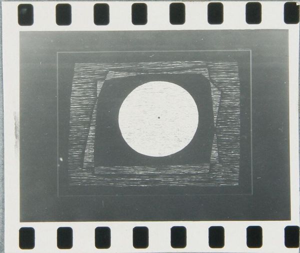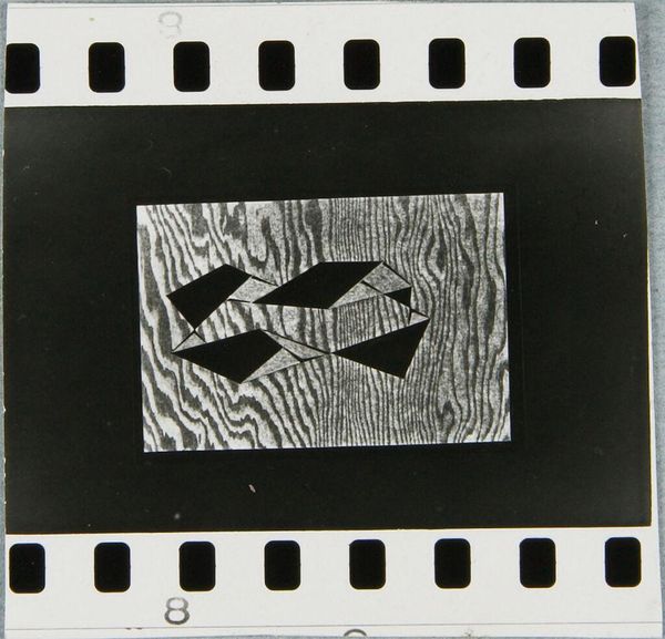 Curator: Here we have one of Josef Albers' prints. Part of a set of slides housed at the Harvard Art Museums. Editor: Striking. It feels like a visual riddle, all stark geometries set against the grain. Curator: It's interesting to consider Albers' background in the Bauhaus, where craft and art were considered equal. The printmaking process itself becomes a key element here. Editor: The overlapping triangles remind me of alchemical symbols. A visual language meant to convey deeper truths about transformation. Curator: It also speaks to Albers’ interest in perception and how we construct meaning through simplified forms and their material presentation. Editor: Perhaps it's about the transformation of base materials, or even the transformation of the self through understanding these symbols. Curator: A compelling idea that enriches how we see the labor that went into the making of this set of prints. Editor: Indeed, art that rewards contemplation on multiple levels.