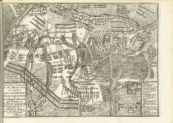 In Matthijs Pool’s etching of the Siege of Ghent, 1708, we see a city meticulously mapped, its fortifications resembling a complex labyrinth. These star-shaped fortresses, a common sight in 18th-century military cartography, are potent symbols of human attempts to impose order and control over both land and conflict. The star fort, with its angular projections designed to eliminate blind spots, echoes motifs found in ancient diagrams of cosmological order. This shape appears across cultures – from the ground plans of Renaissance ideal cities to medieval alchemical symbols representing spiritual fortresses. Observe how the city's layout is tightly bound within these geometric defenses, a visual metaphor for the psychological state of being under siege. It speaks to the collective anxiety and the subconscious desire for protection that permeates such times. This representation of Ghent, caught in the act of fortification, mirrors our deepest fears and our enduring quest for security. It reflects the non-linear, cyclical progression of human conflict, constantly resurfacing and evolving across history.