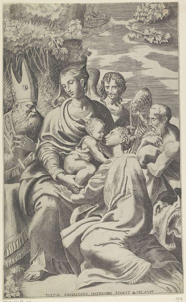 Editor: Here we have Bartolomeo Biscaino’s “The Circumcision of Christ,” an engraving dating from around 1640 to 1657. It’s incredibly detailed for a print, almost overwhelmingly so. What do you see in this piece, beyond the obvious biblical scene? Curator: It's a fascinating tableau, isn't it? But what I find truly compelling is the way Biscaino grapples with power dynamics here. Consider the historical context: in the 17th century, representations of religious events were often deployed to reinforce existing social hierarchies. Does this image challenge that, or reinforce it? Editor: I hadn’t thought of that. It does seem pretty traditional – Mary looks very passive, the men are the active participants… Curator: Exactly. And what about the children in the foreground? Are they innocent cherubs, or do they symbolize something more complex within the narrative? Remember, art doesn't exist in a vacuum. This image is a product of its time, reflecting and perhaps subtly critiquing the patriarchal structures of 17th-century society. How do the gazes of the figures influence your understanding? Editor: That’s a great point. The older men seem to hold all the power through their knowledge, their gaze directed downwards... whereas Mary averts hers. Is the circumcision shown as the introduction of a baby boy into a community governed by men? Curator: Precisely! And consider the composition itself - the way the artist positions the figures. What power dynamics are visible through these structural elements? Editor: The angles certainly lead you to view the event through their eyes and perspectives. I never thought of engravings having this much depth. Curator: Absolutely. Art like this becomes a lens through which we can examine the social and political landscape of the time. Considering its legacy, and perhaps our complicity, adds even more layers. Editor: Wow, I'll never look at Baroque art the same way again. There is so much here.