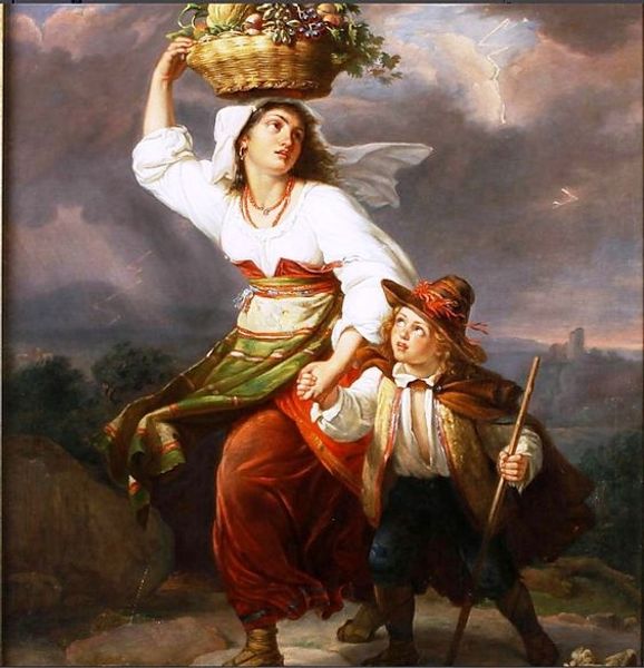 Editor: William Bouguereau's "Return from the Harvest," painted in 1878, showcases such lively activity. I am particularly struck by the light playing over the figures' faces; what does this composition evoke for you? Curator: It’s tempting to view this simply as a celebration of rural life, but considering its context, the painting offers a curated image of peasant life for the consumption of an urban, bourgeois audience. Notice how idealized the figures are: clean, attractive, seemingly untouched by hardship. How does this romanticism strike you in light of other contemporary portrayals of working-class individuals? Editor: Well, it feels like it sanitizes the experience, making it more palatable for the upper classes, doesn’t it? Like a carefully staged tableau rather than a raw slice of life. Curator: Precisely! Bouguereau’s skill allowed him to paint for the market, crafting an appealing narrative rooted in academic traditions. He offered a vision of the peasantry that confirmed prevailing social hierarchies while seemingly honoring rural labor. What effect does this have on our perception of the image now? Editor: It makes me question whose story is really being told. The painting almost seems to be saying more about the values of the art market than the lives of the peasants themselves. It also creates expectations about how the life of common folk has to be, far from reality. Curator: Yes, considering this painting in its historical context unveils a fascinating intersection of artistic skill, social power, and market demand. Examining what's present versus what’s omitted helps to read an image like this beyond the simple prettiness it so expertly projects. Editor: I agree, I didn't expect such commentary behind an outwardly pleasant scene. Now, I realize the art market influences every piece that enters it.