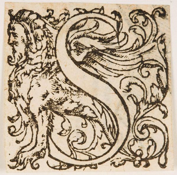 Curator: Oh, I am drawn into the darkness here. It's like a portal, you know? Editor: Indeed! This is an anonymous print from the Harvard Art Museums collection entitled "Letter D". One cannot escape the labor evident in the cross-hatching, and the elaborate design, right? Curator: It's almost teeming with life! A bestiary in miniature. The animal inside the letter looks like it is swallowing the frame. Do you see it too? Editor: The dragon-like figure? Sure. Look closely at the raw materials. The paper itself, likely pulped rags, speaks to a complex network of trade and production, doesn't it? Curator: Right, but I love the fact that it makes me feel slightly unsettled. The artist remains unknown, and the letterform, so contained, hints at something untamed. Editor: It is a reminder of how art, even in its smallest forms, is deeply rooted in the material world, labor, and exchange. Thank you for conjuring its magic for us. Curator: And thank you for grounding my flight of fancy with earthy reality.