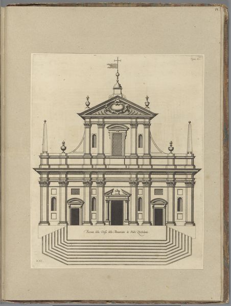 Curator: What an imposing design. This is Marcus Tuscher’s “Udkast til facaden af S. Lorenzo, Firenze,” a proposed façade for the Basilica of San Lorenzo in Florence, rendered in ink, likely around 1731. Editor: It does have a certain monumentality. The symmetry is the first thing I notice, and those two prominent towers flank what seems to be the main structure with impressive balance, almost daring you to question its stability, or its maker’s intentions, but I do. Curator: Stability is interesting to consider, as ultimately, the design was rejected. Brunelleschi’s Old Sacristy was already incorporated, posing quite a challenge to redesign the façade. Considering Tuscher was working for the Danish Royal Court, can we consider the intersection between religion and politics at play here? It seems rather relevant, don't you think? Editor: Relevant certainly, but I wonder more about the sheer labor involved in such a structure, regardless of its political symbolism. The extraction of the stone, the cutting, the transportation... And the societal implications for those doing it all. One almost needs to think about scale; how it influences the building itself. Curator: True, it makes you consider what narratives were actively being erased as well. And for what social gain? This kind of drawing becomes crucial as historical evidence, documenting not only a design, but the aesthetic values of that historical period, and also the power dynamics in society itself. Editor: Precisely. The design may be divine, but the physical production… that is inherently material and bound by human and environmental limitations. This clash highlights just how the concept could be so powerful but, remain so removed from practical reality. Curator: I'm left considering the many layers of unrealized potential and all that we project on works that didn’t come to be. What it signifies. Editor: Yes, an elegant, yet ultimately, unrealized material proposition which reminds us that ideas and drawings alone cannot dictate the nature of the world around us.