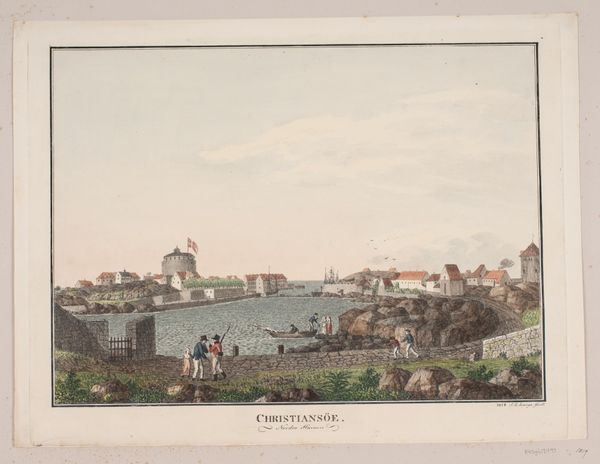 Søren L. Lange captured this view of Christiansø from the west in a print of blended lines and muted colors. The composition, structured around a central horizontal band of the island's landscape, presents a scene of understated activity. The pale sky and tranquil waters create a placid atmosphere, inviting contemplation on the relationship between nature and human presence. Lange's strategic use of line and perspective guides our gaze across the scenery. The rough texture of the stone wall in the foreground contrasts with the smoother surfaces of the buildings and the sea. This juxtaposition highlights a structured hierarchy in the landscape. The human-made structures, from the fortifications to the distant ships, are systematically embedded within the natural environment, suggesting a narrative about control and adaptation. The subtleties of this work encourage us to consider how Lange uses the formal qualities of printmaking to convey the complex interplay between culture, environment, and perception.