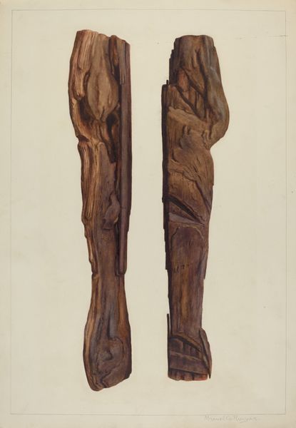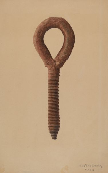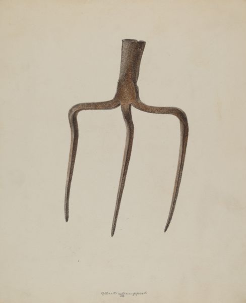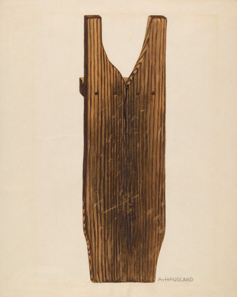 Gerald Bernhardt created this drawing of a bootjack, using pencil and watercolor. The bootjack, a simple tool for removing boots, highlights the relationship between labor and everyday life. Notice how the artist captured the texture and form of the original object, emphasizing its handcrafted nature. The wood's grain and the tool's shape speak to the human effort involved in its creation. The drawing, with its detailed rendering, elevates the status of this humble, utilitarian object. Bernhardt's artistic choice invites us to consider the value and artistry inherent in functional items. It underscores the connection between craft and design, and how these practices are integral to our lived experience. By focusing on such a mundane object, Bernhardt challenges the traditional hierarchies of art, prompting us to see beauty and significance in the everyday.