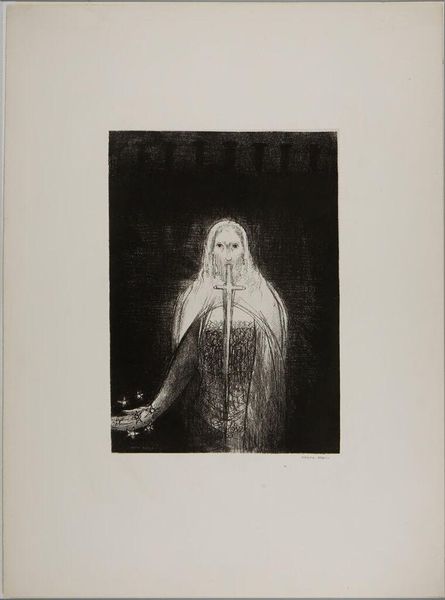 Odilon Redon created this lithograph, "And He Had in His Right Hand Seven Stars; and Out of His Mouth Went a Sharp Two-Edged Sword," an evocative image inspired by the Book of Revelation. Here, stars, often symbols of divine guidance or celestial beings, cluster around the figure's hand, while a sword emerges from the mouth, suggesting the power of divine judgment or truth. The sword is an ancient emblem. We find it not only as a weapon of war but also as a symbol of spiritual discernment. Consider its echo in the flaming sword of the cherubim guarding Eden or the celestial sword wielded by archangels. The emotional weight of the image lies in its stark contrast: the ethereal stars against the harsh, piercing sword. This stark juxtaposition delves into the collective unconscious, stirring primal fears and hopes. It serves as a potent reminder of humanity's eternal dance between darkness and light. Just like the ouroboros, this symbolism is not linear but cyclical. The sword and stars re-emerge in our dreams and myths.