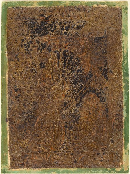 Curator: Before us is a tempera and oil painting on a panel, likely crafted between 1323 and 1335 by an anonymous artist. The work, titled "Arrest of Jesus, Crucifixion, St. Nicholaus and St. Catherine," sadly shows its age with significant surface damage. Editor: Even in its deteriorated state, there’s a palpable sense of solemnity. The composition, though fragmented, evokes a profound feeling of loss and contemplation, like glimpsing echoes of devotion across centuries. Curator: Indeed. Looking closely, we can still discern traces of the artist's process: the careful application of gesso to prepare the panel, the layering of tempera, and then perhaps the addition of oil glazes. The physical materials themselves carry the history of the artwork’s creation and its subsequent life. Editor: And what a life! Consider the choice of depicting both the arrest and crucifixion of Jesus, flanked by St. Nicholas and St. Catherine. The crucifixion, a universal symbol of sacrifice and redemption, paired with the narratives of these saints...it speaks volumes about the values and beliefs that resonated deeply within the society that created it. Curator: Precisely. And one must also consider where the materials came from; who were the merchants selling pigments at that time and how costly was this? And of course, consider also, the conditions under which this artwork would have been made. The availability of resources would certainly inform the quality and scale of an artwork such as this. Editor: Absolutely. The iconography also gives insight into how religious narratives were being interpreted and disseminated visually in that period. St. Nicholas, with his association with charity and miracles, alongside St. Catherine, patron of knowledge and philosophy, add layers of meaning. The image presents both earthly benevolence and heavenly wisdom, so viewers have different ideas or concepts to consider. Curator: Despite the surface damage, this panel offers us a tangible connection to the past, shedding light on medieval artistry, labour, trade, and the use of precious materials. Editor: For me, even with its fragmented state, it’s the enduring power of those central Christian symbols which are truly remarkable, continuing to reverberate even through centuries of change and wear.