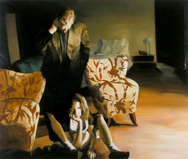 Eric Fischl’s enigmatic painting, titled "The Clemente Family," captures a gathering, or perhaps a staging, of figures bathed in a stark, revealing light. Note how the crossed arms in the background figures convey detachment, a motif echoing the ancient gesture of mourning or defiance. Consider the woman's dress in the foreground, reminiscent of a classical frieze, its geometric pattern invoking both order and a sense of unease. This motif, like the checkerboard floors in Renaissance Annunciations, suggests a stage upon which human dramas unfold, echoing vanitas themes of life's fleeting nature. The light is harsh, almost clinical, a technique similar to Caravaggio's use of chiaroscuro, which plunges some figures into shadow, evoking a sense of psychological tension. The emotional weight of this image is heavy. Like a recurring dream, these symbols and compositions reappear, transformed yet still recognizable, carrying the echoes of our collective past.