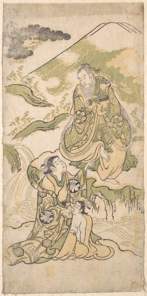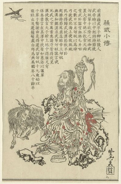 This print, "Shakyamuni Conquering the Demons," was made by Kawanabe Kyōsai in 19th-century Japan, using ink and color on paper. The flat, matte surface and delicate lines are characteristic of traditional Japanese woodblock prints, or *ukiyo-e*. But look closely, and you'll notice that Kyōsai's hand is far from traditional. The subject is classical, yet the treatment veers into the grotesque, almost comical. The texture of the demon is particularly interesting, built up with countless tiny brushstrokes, giving the creature a palpable, almost furry presence. The way in which the artist uses line to define form, and the flat blocks of color to create depth, shows a real understanding of the printing process. Kyōsai was trained in both *ukiyo-e* and Western-style painting, and this hybridity allowed him to make work that was both deeply rooted in Japanese culture, yet also strikingly original. He brings a painterly sensibility to what was essentially a commercial medium. It's a testament to the power of craft traditions to evolve and adapt in unexpected ways.