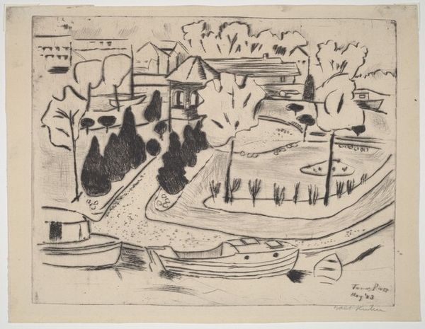 John Marin created "Stonington Harbor, Maine" using watercolor and charcoal. Marin, working in the early 20th century, was part of a generation grappling with rapid industrialization. His choice of watercolor, a medium often associated with immediacy and transparency, allowed him to capture the ephemeral qualities of light and atmosphere. Here, you can see how he renders the Maine harbor with loose, gestural strokes, as if to mirror the constant motion of the sea. The fishing industry has always been central to Maine's identity, shaping communities and individual livelihoods. We are invited to consider what it means to represent a place so intimately tied to both natural beauty and hard labor. Marin once said he wanted his lines to ‘dance with joy’. In this context, consider whose joy is represented, and whose stories remain unseen in the abstraction. This scene offers a window into a specific time and place, reflecting broader societal issues.