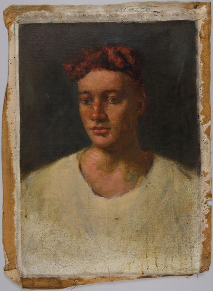 Editor: This is "Ginger; verso: Portrait of a Seated Young Man" by Denman Waldo Ross. I'm really struck by the bright orange cloth contrasting with the cool blues in the background. What symbols or ideas do you think Ross was exploring? Curator: The orange cloth, draped so deliberately, evokes classical drapery and speaks to traditions of representing the human form. Note the stars behind the figure. What might they suggest about the sitter's aspirations or inner world? Editor: Perhaps a sense of hope or destiny? I hadn't really noticed them before! Curator: Exactly. The image becomes a landscape of the mind, rich with cultural memory.