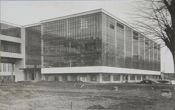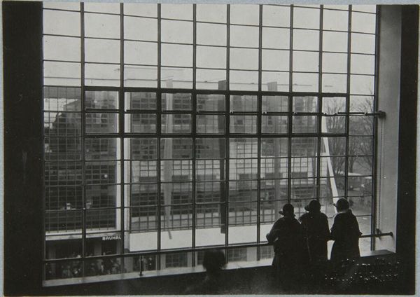 Editor: This is a photograph of the Bauhaus Building in Dessau, taken around 1925. It shows the technical school's stairwell landing. I find the grid-like composition quite striking; what do you see in this piece? Curator: I see a deliberate construction of a utopian vision through architecture, presented as a public spectacle. The glass facade isn't just functional, it's a statement about transparency and accessibility, reflecting the Bauhaus ethos of democratizing design. Editor: Democratizing design? How so? Curator: The Bauhaus aimed to break down the barriers between art, craft, and technology. The building itself becomes a teaching tool, its structure embodying the school's principles. The image, then, is propaganda for a new way of thinking about art and its role in society. Editor: That's a really interesting way to think about this image, seeing it as a promotion of those ideals! Curator: Indeed. And it prompts us to consider the role of architecture in shaping social values and the politics embedded within seemingly simple design choices.