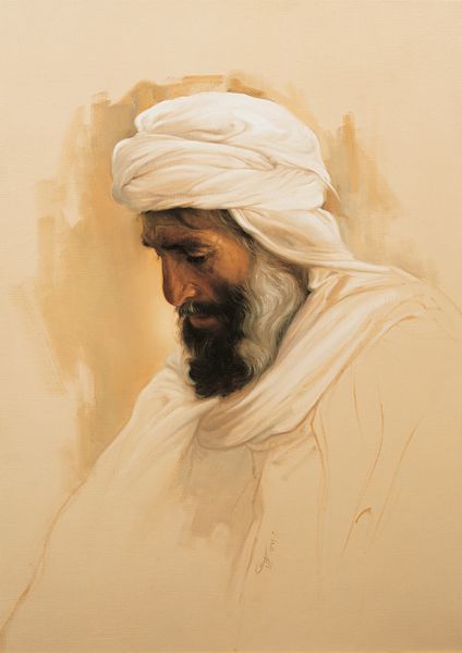 Curator: There's a quiet intensity in Eric Kennington's "Muttar il Hamoud min Beni Hassan." I love how the light seems to catch every fold of fabric, giving him such presence. Editor: He seems deeply thoughtful, doesn't he? Melancholy, perhaps. The colors, though vibrant, feel muted, like a memory. Curator: Kennington, who lived from 1888 to 1960, had a knack for capturing the human spirit, especially those he encountered during his time as a war artist. Editor: It’s interesting how war art often humanizes the "other," challenging us to see beyond stereotypes, even years after its creation. Curator: Exactly. And the Tate's decision to include this in their collection only amplifies that enduring power. Editor: Well, I feel I've met this man somehow, even though he's frozen in time. Curator: Indeed, it feels like a bridge across cultures and eras, doesn't it?