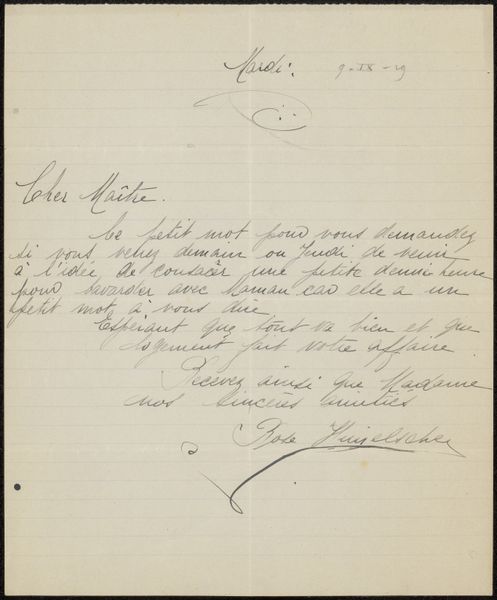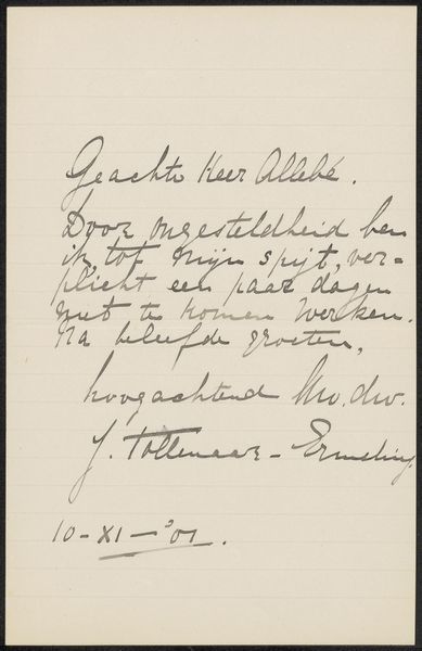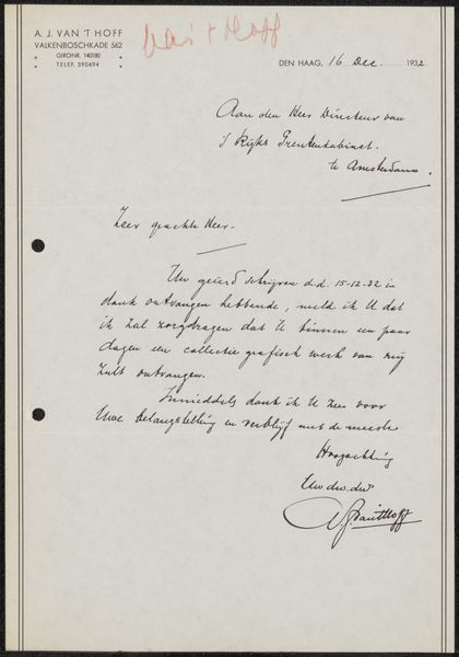 Hendrikus Hubertus van Kol created this letter to Philip Zilcken in 1918. Immediately, the eye is drawn to the contrast between the rigid grid of the paper and the fluid, cursive script that fills the space. The handwriting, with its varying pressure and rhythm, creates a unique texture. Van Kol's choice of a grid as the underlying structure introduces a fascinating tension. The grid, a symbol of order and rationality, is overlaid with the organic, expressive qualities of handwriting. It represents how personal expression interacts with the broader framework, where individual voices navigate and negotiate within prescribed structures. This interplay challenges the notion of fixed meanings and highlights the inherent fluidity of communication. The act of writing, a deliberate imposition of form, becomes an exercise in navigating and subverting established patterns. We are left to consider how even within rigid systems, the individual's mark can assert itself.