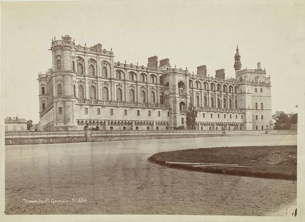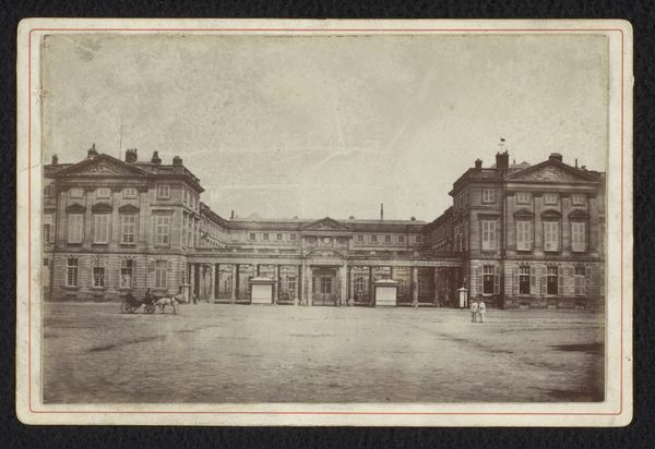 Charles-Henri Plaut created this photograph of the Palais du Luxembourg in Paris using an early photographic process. The dominant visual experience is one of structured elegance and muted tones. The composition, split into thirds, contrasts the architectural precision of the palace with the organic softness of the foreground elements. The palace itself, a study in symmetry and classical proportion, presents a facade punctuated by evenly spaced windows and decorative stonework. The formal garden, with its bare trees and still pool, introduces a natural counterpoint. The photograph’s gray scale flattens the depth of field, emphasizing the surface texture of the stone and the intricate details of the palace architecture. The image is not just a representation but an exploration of form, light, and texture, inviting us to consider the relationship between architecture and nature.
