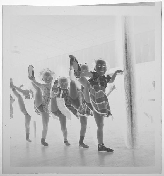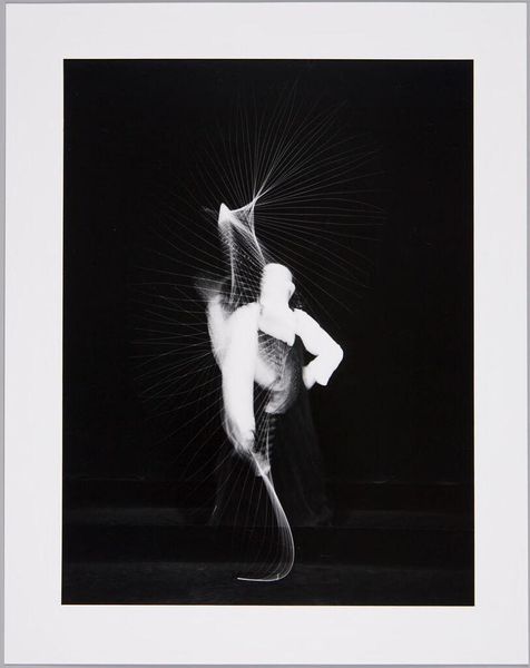 Editor: This is Harold Edgerton's "Pete Desjardin Diving," a black and white photograph. It almost looks like a ghostly figure repeating itself. What do you see in this piece? Curator: The multiple exposures evoke a sense of time collapsing, don't they? It reminds me of the myth of Icarus, momentarily defying gravity before the inevitable fall. Editor: Oh, that’s interesting. So, are you saying the diver could be seen as a symbol of ambition and its potential consequences? Curator: Precisely. The image becomes a visual metaphor, echoing our own aspirations and limitations. The splash below, what does that signify to you? Editor: Perhaps a return to reality or the acceptance of one's fate. I never thought a diving photo could hold so much meaning. Curator: Indeed. Photography, like all art, captures not just a moment but the echoes of cultural memory.
