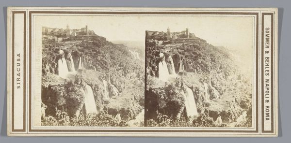 Curator: This is Hermann Selle's "Gezicht op ruïne Rothenburg, nabij Kelbra," a print, potentially after a photograph, dating from between 1868 and 1890. Editor: The photograph certainly captures a melancholic, romantic sensibility, doesn't it? I am curious to hear your interpretation of this work. Curator: Well, given its materials and period, I'm more interested in the means of its production and dissemination. Think about the infrastructure required to produce a photographic print like this, the transportation networks needed to distribute it, and the emerging culture of photography that allowed for its consumption. Editor: I hadn't thought about it in those terms. I was more focused on the ruin itself as a symbol of time and decay. Curator: Of course. But look at the standardized format, probably produced in bulk. Consider how photography, particularly landscape photography, was becoming democratized. It offered a simulacrum of travel and experience, reproducible and affordable for a wider audience. How does that availability shift ideas of place and ownership? Editor: So, instead of focusing on the artist’s vision, you’re drawing attention to the societal forces that shaped its production and consumption? Curator: Precisely. What materials went into making it, and who was involved in that process? And how did such imagery, through its distribution and consumption, affect the way the middle classes, who bought images like this, conceptualized Germany and Germanness in a time of industrialization? Editor: That really changes how I see this image. It is far more connected to economics than I initially imagined. Curator: Exactly. It is important to consider art objects beyond aesthetics to interrogate their social and historical contexts. Editor: I have never considered this view of materiality, but this viewpoint truly broadened my knowledge of this medium and the related historical period.