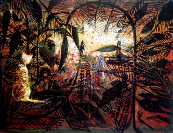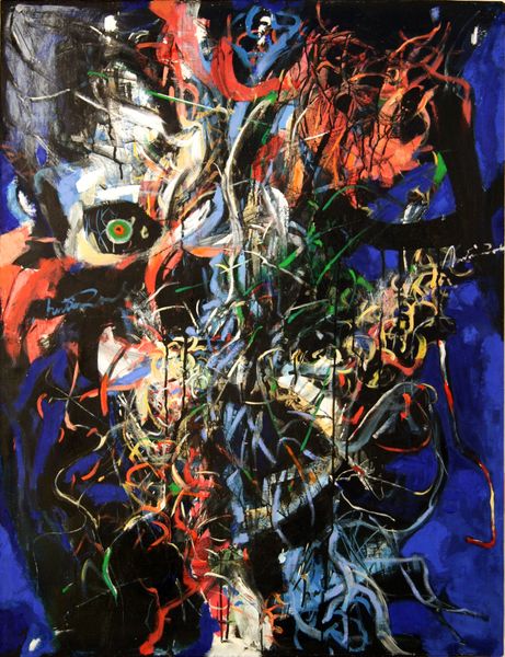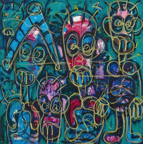 Editor: Alexander Roitburd’s “Annunciation,” created in 2008 using acrylic paint, presents a captivating swirl of vibrant color. The chaos feels… deliberate, almost like an emotional landscape. It's a lot to take in. What catches your eye, what story does this painting whisper to you? Curator: Well, my dear editor, it screams more than whispers! It’s a glorious mess, isn't it? Roitburd was all about emotion – a Ukrainian neo-expressionist, with the soul of a street artist and the mind of a philosopher. This "Annunciation" isn't your grandma’s Nativity scene. Look at the frenzy of lines, the near-violent application of pinks and purples... It feels almost like a spiritual experience, viewed through a kaleidoscope, a very *agitated* kaleidoscope. Do you see how the abstract shapes almost suggest figures, a hint of narrative buried within the energetic brushstrokes? Editor: I can see vague suggestions of figures. But is it really about the religious Annunciation then? Or is Roitburd using the title more… ironically? Curator: Exactly! Perhaps it's the annunciation of something else entirely— a new era, a personal revelation, or even just the sheer exhilaration of painting itself! Remember, abstraction can be the most potent form of storytelling. It gets under your skin, bypasses the logical brain, and hits you right in the gut. It is almost like the gospel, for a chaotic and uncertain world, wouldn't you say? Editor: That makes so much sense. It's definitely not a painting you just glance at and walk away from. I definitely didn't get all that on the first look. Thanks for blowing my mind a little. Curator: The pleasure's all mine, it seems, my young apprentice. Remember, art isn't always about answers. Sometimes, it’s about the beautiful, messy, exhilarating questions it provokes!