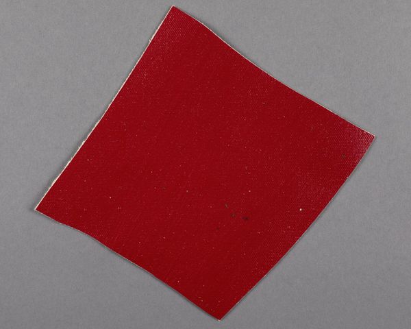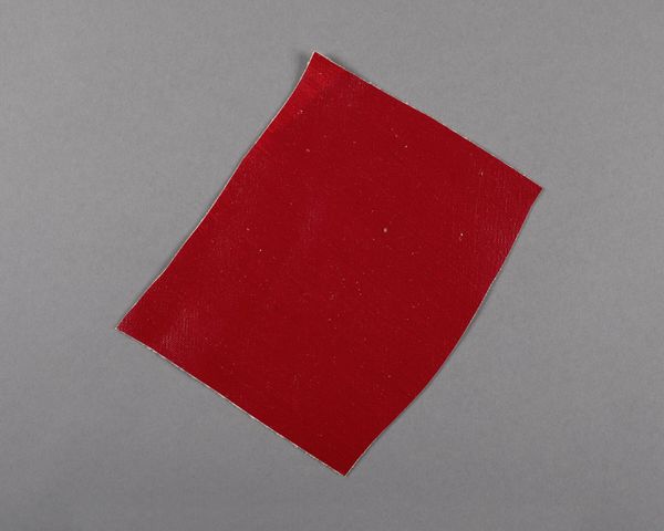 Editor: Here we have a small, almost square, painted canvas fragment by Barnett Newman. The vibrant red is striking, but what strikes me even more is the raw, unfinished edge. What can we learn from the material reality of this piece? Curator: Precisely. Consider the means of production. This isn't about idealized beauty; it's about the physical act, the labor of applying that red pigment to the canvas. Think about the social context: the rise of mass production, the artist grappling with materiality in a post-industrial world. How does this fragment challenge our notions of preciousness in art? Editor: So, by focusing on the materials and the process, we're not just seeing a scrap of canvas, but a commentary on art's role in society? Curator: Exactly. It reframes the value, moving away from traditional aesthetics and towards a dialogue about production, consumption, and the very definition of "art." I wonder if this was rejected? Editor: It definitely gives me a new perspective on how to approach art. Curator: Indeed. The material tells a story if we are willing to listen.