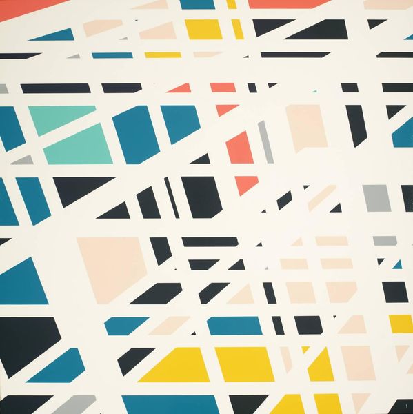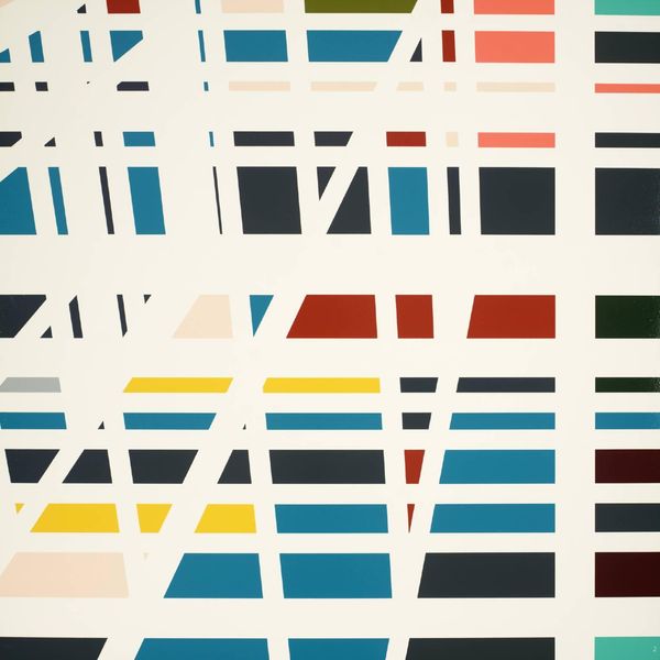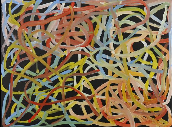 Editor: This is Sol LeWitt’s *Untitled (Ribbons)*, using acrylic paint. I’m immediately drawn to the almost chaotic yet ordered arrangement of lines, giving a sensation of constant motion. How do you interpret this interplay between order and chaos in his work? Curator: Well, the beauty here lies in the simultaneous evocation of structure and spontaneity. Each ribbon, individually painted, becomes part of a greater symbolic lexicon. These lines could represent pathways, journeys, or even the very fabric of connection in our world. Do you notice how the colour choices influence the viewer's experience? Editor: Absolutely. The juxtaposition of vivid reds and yellows with more muted blues and grays seems intentional, perhaps highlighting moments of energy against a backdrop of contemplation? Curator: Precisely. Think about how the act of repetition reinforces meaning. The ribbon motif echoes through cultures, from celebratory adornments to representations of unity and shared identity. Is LeWitt playing with this collective understanding? Editor: That’s fascinating. I hadn't considered the potential symbolic weight of ribbons beyond their visual impact. I’m seeing it as not just an abstract artwork but perhaps also a statement on shared cultural motifs and how we connect with each other through symbols. Curator: And consider, too, how a single line, repeated, can transform into a landscape, a narrative, a shared experience. The ribbon, as a symbol, is charged. Editor: This has certainly shifted my perspective, allowing me to appreciate both the artistry and the cultural layers present within this piece. Thank you for illuminating that. Curator: My pleasure. It's in understanding those layered meanings that we can truly unlock the power of visual language.