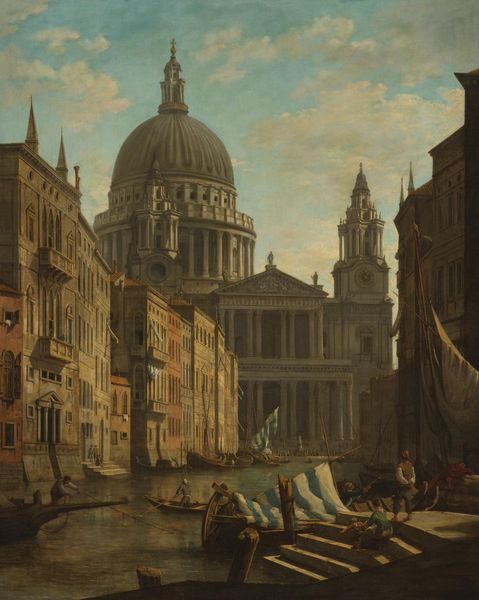Canaletto painted this view of the Entrance to the Grand Canal in Venice to capture the city's unique atmosphere and thriving maritime culture. Painted in the 18th century, a time when Venice was a major center for trade and tourism, the painting reflects the city's economic power and cultural vibrancy. Canaletto’s use of light and shadow creates a sense of depth and realism, while the detailed depiction of boats and gondolas highlights Venice's maritime identity. The prominent presence of the Santa Maria della Salute church underscores the importance of religion in Venetian society, with its annual festival. Canaletto was supported by wealthy patrons, including British nobles on the Grand Tour. By studying historical records, maps, and other visual materials, we can better understand the social and institutional context in which Canaletto created this painting and appreciate its enduring appeal as a symbol of Venice.