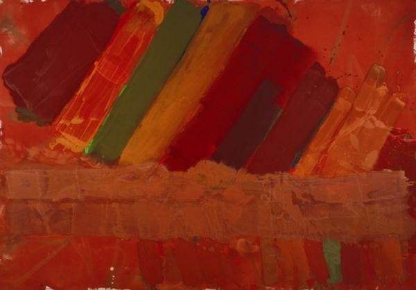 Albert Irvin created this painting named “Festival” with broad strokes of vivid color. The forms, while abstract, invoke a sense of lively celebration, calling upon visual memory and subconscious emotions associated with communal joy. Consider the symbolism of the circle and the line, ancient forms present in cultures around the world. The circle, often seen as a symbol of wholeness, unity, and cyclical time, has been revered across various cultures, from ancient sun worship to its use in mandalas. In contrast, the line might represent direction, movement, and connectivity. In Irvin’s work, the lines intersect, binding together circles of different colors. Such intersections reflect a deep-seated human impulse to find order and connection. The human mind, in its quest for meaning, seeks to reconcile disparate elements into a cohesive whole, evoking primal emotions tied to our collective past. The festival is thus a symbolic representation of life's inherent dynamism, a visual echo of humanity's continuous dance between chaos and order.