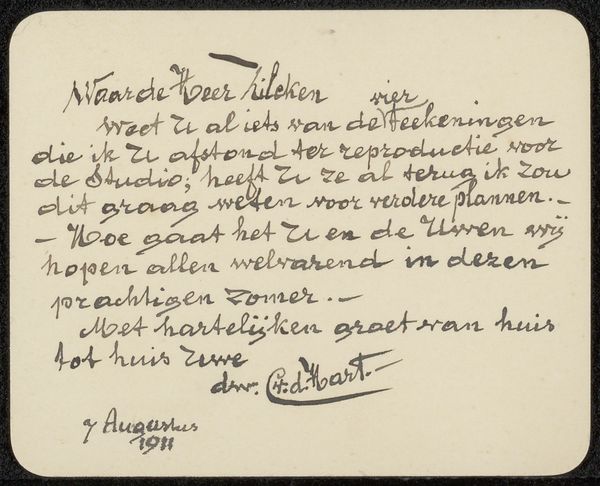 Curator: At first glance, I find the typography so very appealing. Its delicate balance creates an intimate and personal experience for the viewer. Editor: We are currently looking at "Huwelijksaankondiging aan Philip Zilcken," which roughly translates to "Wedding Announcement to Philip Zilcken," created anonymously before 1896. This graphic art print uses paper and what looks to be textile elements to create this formal announcement, currently residing here at the Rijksmuseum. The historical context here is rich, this artwork offers insight into the social customs of the time, particularly how families publicly announced marriages. It speaks volumes about social standing and the importance of formal communication in the late 19th century. Notice it is the Widows of the marrying couple who are issuing the formal announcement. Curator: Yes, this choice of materials contributes to the texture, which amplifies the tactility, almost begging to be touched, even through glass. Look closely at the contrast. Editor: True, beyond the aesthetics, it serves as a social record. Examining the text reveals insights into Dutch society, naming conventions, and familial roles, shedding light on the networks of relationships within the upper echelons. You notice it's specifically addressed to Philip Zilcken. Do you know why? Curator: Ah, that might speak to a targeted outreach to maintain social cohesion. Philip Zilcken's potential social rank could signify how families like this were seeking to establish bonds. Note how this typography becomes more than lettering. It's really an encoded dance of shapes creating mood, where layout isn’t just structural, it is a vital language. Editor: In this announcement we gain insights into social standing and prevailing values. So, by delving into "Huwelijksaankondiging aan Philip Zilcken" it becomes an enriching lesson about visual experience within Dutch history. Curator: I quite agree; the synthesis between visual composition and its story offers such an invitation to consider an intimate union within a wide cultural moment.
