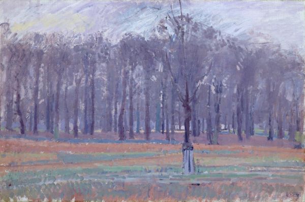 Alekos Kontopoulos made this landscape of Le canal Bethune with oil on canvas, and it feels like the painting happened quickly, intuitively. He’s using a muted palette, lots of grays and browns, but then punctuated by this vibrant green field. Looking closely, the surface has a kind of crustiness. You can see the direction of his brushstrokes, how he’s layered the paint to create texture. The branches of the trees are so tangled, with this dark, brooding mass behind them. It’s not about precision, it's about feeling the weight of the atmosphere. See how the light catches the edges of the field, that slash of green? It’s like a jolt of energy, a counterpoint to all the darkness. It makes me think of other artists who worked with landscape in a similarly emotional way, like Emil Nolde, who used intense color to express inner states. Kontopoulos is doing something similar here, using paint to capture a mood, a feeling of being in a particular place at a particular moment.