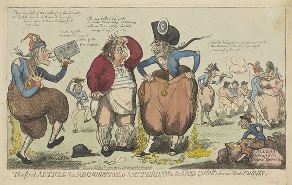 Henry William Bunbury created “Fallen Rider”, a pen and watercolor drawing, sometime in the late 18th century. The scene bursts with disarray, immediately pulling our eyes toward the chaotic composition of a rider tumbling off his horse. Bunbury masterfully uses line and color to amplify the scene's disruption. Notice how the figures—human, equine, and canine—are rendered with exaggerated expressions and postures. The lines are loose and energetic, contributing to a sense of instability. Bunbury destabilizes the traditional composure expected in equestrian portraiture. The earthy browns and greens of the landscape are punctuated by the rider's bright blue coat, drawing our attention to his moment of crisis. The composition, fractured and off-balance, underscores a disruption of social order. Bunbury uses humor to question established norms. The drawing challenges fixed meanings of class and decorum. This piece uses laughter to explore discomfort with social hierarchies.