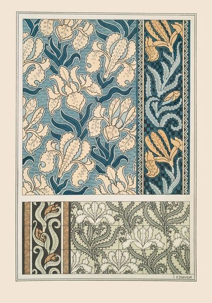 Maurice Pillard Verneuil made this print called 'Aconit 2', a design study of the aconite plant. It reflects the aesthetics of the Art Nouveau movement in France. Verneuil was a key figure in the institutional debates of the time, caught between the industrialized methods and the old guild system, and 'Aconit 2' sits right in the middle of these debates. Notice how Verneuil repeats the flowers and foliage, creating stylized patterns, and the flat, decorative style, typical of the movement that aimed to bring art into everyday life, by making art accessible. Art Nouveau was more than just a style, it was an ideology that aimed to overcome the division of art and craft. Artists like Verneuil looked to the natural world for inspiration. 'Aconit 2' is not just a pretty picture, it's a statement about the role of art in society. To understand Verneuil and his art, you can delve into design history, explore the socio-political context of France at the turn of the century, and investigate the debates surrounding art, craft, and industry.