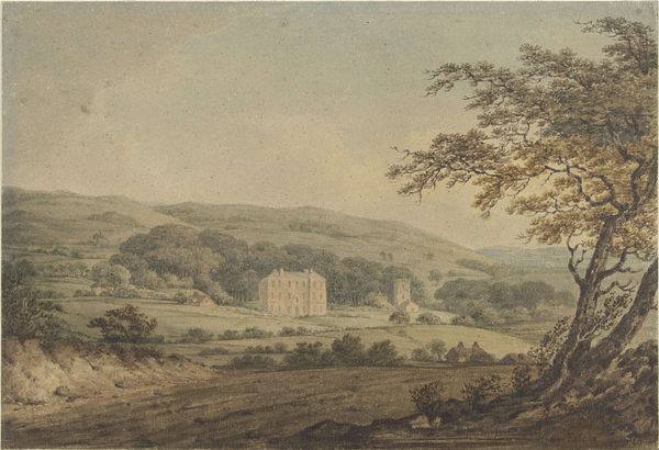 Pieter Barbiers made this watercolor and pen landscape, "View of the Huis Over Holland with tea house on the Vecht at Nieuwersluis," in the Netherlands. It depicts an idyllic scene, but the context of this image is more complex than it first appears. In the late 18th century, the Dutch Republic was undergoing significant political and economic upheaval. The ruling class—wealthy merchants and landowners—faced growing discontent from ordinary citizens excluded from power and prosperity. The carefully composed image of the estate, the leisurely figures in the boat, and the fishermen, all point to a society deeply divided along class lines. To fully understand this artwork, we can consult period documents, political pamphlets, and economic data to help reveal the nuanced social dynamics of the time. The role of the historian is to uncover these hidden narratives and provide a richer understanding of the artwork's meaning.