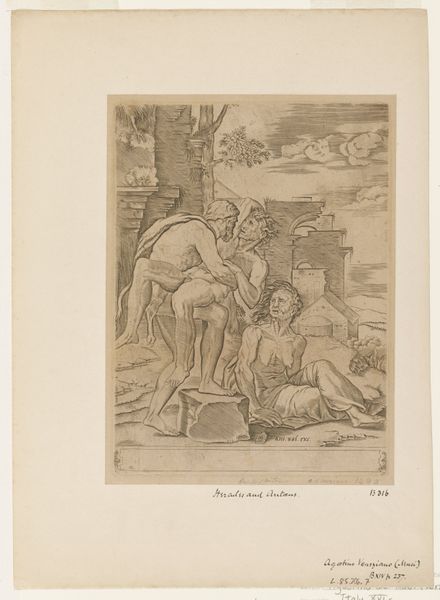 Louis Desplaces engraved this scene of Diana and Endymion, capturing a nocturnal encounter rich in symbolism. Diana, goddess of the hunt and the moon, is distinctly marked by the crescent moon adorning her brow. This lunar symbol, since ancient times, has represented feminine power and cyclical change. The sleeping Endymion is a recurring motif in art history, embodying eternal youth and beauty preserved in slumber. We can trace similar themes back to ancient Greek and Roman sarcophagi, where sleep symbolized the soul's journey into the afterlife. Diana’s gaze upon him is both tender and possessive, reflecting a powerful emotional intensity. Consider how the myth of Diana and Endymion, passed down through generations, taps into our collective fascination with immortality and idealized beauty. The dynamic between the active goddess and the passive mortal raises profound questions about power, desire, and the human condition. This image becomes more than just a story; it's an echo of deeply ingrained cultural anxieties and aspirations.