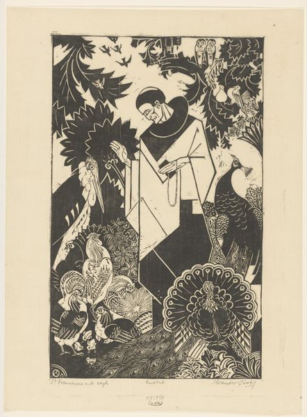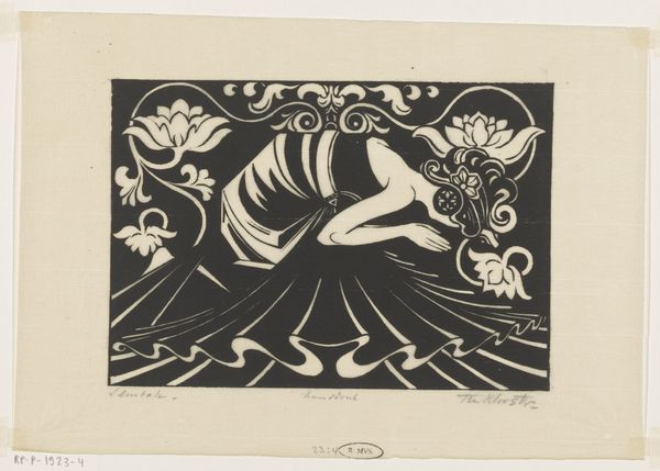 Curator: This linocut by Johannes Frederik Engelbert ten Klooster, entitled "The Winner," dates back to 1919. It's quite striking, isn't it? Editor: Absolutely. My immediate feeling is one of dramatic intensity. The stark contrast of black and white amplifies the struggle against the turbulent sea. There's almost a raw, visceral quality to it. Curator: The composition, dominated by two figures battling the elements, does evoke a sense of heroic defiance. Note how ten Klooster uses the symbol of the boat, a classical symbol for navigation, to place this drama within familiar narratives. Editor: Yes, the 'boat' is interesting – a stark arrow against a turbulent background. This work emerged in the aftermath of World War I, right? I wonder, beyond the literal depiction of figures at sea, if the artist is engaging with the pervasive sense of societal turbulence, with this boat pointing a direction into an uncertain future. Curator: It's a potent image of the era, and aligns with the visual vernacular of German Expressionism; a rejection of naturalism. He's leaning on symbolic imagery to convey profound inner experiences, and universal feelings of striving and mastery over oneself. Editor: I agree, the angular lines and bold contrasts contribute to that sense of unease, even anguish. There is a definite political subtext implied in images such as these: A commentary on authority and individual action in a world struggling with radical changes. It's difficult to separate art from those larger cultural and socio-political undercurrents. Curator: By inverting traditional light/dark relationships and making innovative use of simple imagery, ten Klooster reminds us of shared struggles over time, not merely personal ambition but archetypal. Editor: Ultimately, it becomes about endurance. Who decides when you’ve arrived, when you've overcome the "sea" of social challenges? The "winner" achieves a temporary personal victory in the face of uncertainty; his journey and struggle are far from over. It really leaves you contemplating resilience. Curator: Very insightful; I see that more clearly now. Thanks for helping navigate those interpretive waters. Editor: Anytime. These types of conversations open new paths of exploration to consider!