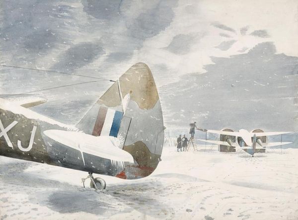 Patrick Procktor made this painting, A Group of Polish Pilots, with what looks like pretty washy paint, but there's a definite sense of play and experimentation. The painting feels very immediate and almost like a sketch. You can really see the hand of the artist in the application of the paint, the way the brushstrokes remain visible, creating a sense of movement and spontaneity. The colour palette is pretty limited, mostly greys and browns, but there's a real sensitivity in the way the tones shift and blend. It's as if he's trying to capture a fleeting moment, a collective mood. Take a look at the pilot standing to the left, the way his features are so simplified, almost cartoonish. It reminds me a little of early Guston, or maybe even some of Elizabeth Murray's more figurative work. I think Procktor is engaging in a dialogue with painting's history, but also bringing his own unique vision to it, embracing ambiguity and multiple readings.