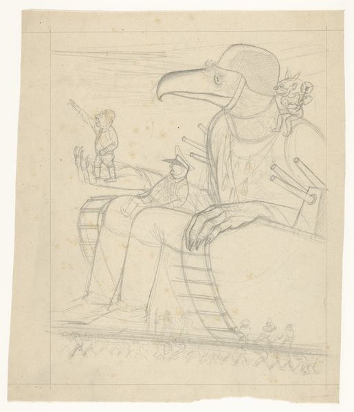 Curator: This is a preparatory sketch by Theo van Hoytema from 1906-1907. It's titled "Sketch for an unused design for the month of May in the 1907 calendar" and we're seeing it today, appropriately enough, here at the Rijksmuseum. It’s pencil on paper. What’s your immediate impression? Editor: Fragile. And wistful. It’s the kind of drawing that makes you want to rummage through old attic boxes, doesn’t it? Find hidden letters and faded ribbons. Curator: Yes, a beautiful, unassuming sketch. Hoytema was a key figure in Dutch symbolism. And it reminds us that the applied arts – things like calendars, advertisements – provided crucial avenues for artistic experimentation at the time. This sheet, though just a preliminary drawing, encapsulates that interplay of art and everyday life. Editor: There's a charming awkwardness to the birds, particularly the one with its beak wide open like it's yelling. It doesn't feel…polished. Raw, even. Were those sorts of calendar designs common back then, highlighting natural elements? Curator: Indeed. Nature played a significant role in Symbolist art, a way of moving away from industrial society toward representing something pure, even spiritual. These types of images would evoke certain seasonal activities tied to nature, farming, even the weather. But these calendars also participated in something broader: creating national imagery around ideas of Dutch identity at the turn of the century. Editor: It makes me think of a naturalist journal. Something Darwin might’ve doodled in between meticulous observations. Do you think there's a push and pull here, a tension between art serving a social function through the calendar versus the artist simply creating, or perhaps being drawn to birds for their artistic or creative inspiration? Curator: Absolutely. It speaks to how artistic practices became interwoven with larger processes of visual communication. Mass media and the design and advertising industries at that moment relied increasingly on artist-designers for creative output, commissioning people like Hoytema who brought not only technical expertise but that connection with nature and with wider notions of Dutch identity to it all. It becomes harder and harder, really, to say that something is 'purely artistic' when art can have so many jobs at once. Editor: Which means every calendar is potentially a revolutionary act! That gives me something to ponder the next time I’m scheduling a dentist appointment. It's fascinating to consider it as both an intimate sketch and as a statement about the times. Curator: Precisely. I see these connections – artistic, personal, socio-political – adding extra layers to a design that at first glance seems like just birds on paper.