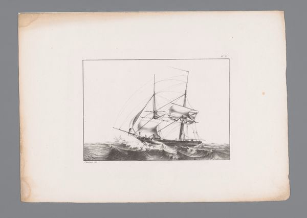 Pieter le Comte created this drawing of a Dutch barge, a "Gaffelkaag, gaffelschip of lichter," at an unknown date, using pen and ink. The meticulous rendering of the boat’s rigging and hull highlights the relationship between the artist’s hand, the tools used to create the drawing, and the labor required to build and operate such a vessel. The precision and attention to detail suggest a deep appreciation for the craftsmanship involved in boat building. Le Comte’s technique elevates the ordinary working vessel to a subject worthy of artistic attention, prompting us to consider the economic and social context of maritime trade in the Netherlands. This artwork blurs the lines between documentation, artistry, and social commentary. By focusing on the craft of both boat building and drawing, we gain insight into the cultural and economic significance of maritime activities in the Netherlands, and perhaps a deeper understanding of the lives of those who worked on these vessels.