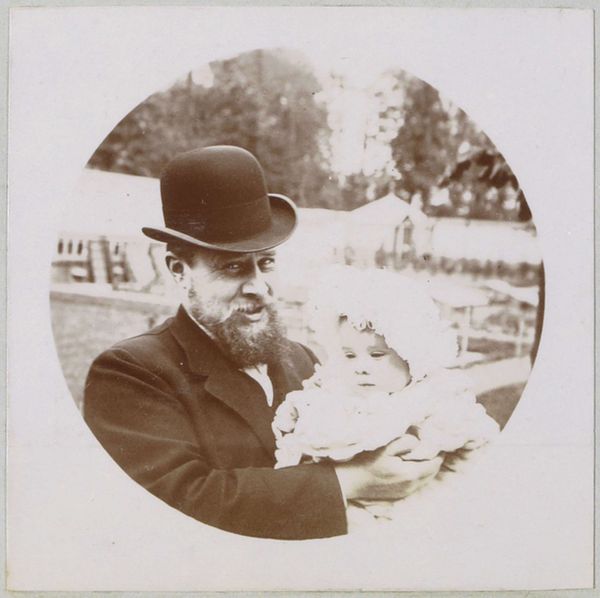 Curator: This is a photograph from 1907 titled "Constantin Mitrofanovitch Flórinsky, Officer of His Majesty Tzar Nicholas II (Jaeger Regiment)." It's currently part of the collection at the Metropolitan Museum of Art. Editor: It has such a solemn feel. He stands rigidly with a cane against this blurred autumnal backdrop, framed by formal garden elements. There’s something undeniably melancholic about it. Curator: And he *is* positioned formally. Notice the details that speak to his station and military role—the meticulously tailored greatcoat, his assured pose, the very deliberate way he holds the cane, a known marker of the elite. This photograph seems carefully constructed to project an image of power and order, deeply embedded in the Imperial system. Editor: The lighting and the color palette are evocative. While seemingly realistic, the photograph employs symbolism through color to signal the sitter’s significance. His attire and the surrounding railings almost blend tonally, unifying his sense of status within this historical context. Curator: I find that point interesting given what we know of the broader cultural trends at that time in Russia. While photography was gaining popularity as a tool for social documentation, it was also being used to reinforce established power structures. Portraits like these played a vital role in maintaining the Tsar's image and influence. Editor: It also hints at how an image may influence what power we assign to that sitter. How does Flórinsky want to be seen? Note the symbolism in the formal wear versus the casual elements in the backdrop, where autumn mirrors the ephemeral nature of worldly status, as everything shifts and falls from its initial placement in time. Curator: That interpretation, from an iconographic perspective, sheds an insightful light on the portrait. The image could suggest an awareness of impending change— perhaps the societal shifts bubbling beneath the surface of Tsarist Russia? Editor: Maybe. Perhaps in gazing at it, we project the present back on the past, finding hints of the inevitable fall. Curator: Whether Flórinsky fully realized those changes, he wanted to make sure this portrait presented a steadfastness through very calculated and material displays of visual imagery. Editor: And this portrait remains as an enduring cultural symbol of not only the subject, but a visual moment ripe with potential, now forever crystallized.