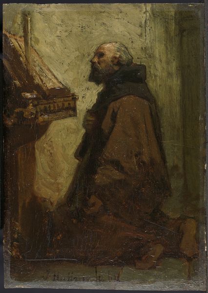 Anton Mauve painted this oil on panel portrait of Pieter Frederik van Os, a fellow painter, at an unknown date. Van Os is cast in shadow. The light glances off his face, illuminating his features and the set of his jaw. Mauve and Van Os were both part of a generation of artists working in the Netherlands amid significant social change. The industrial revolution was transforming Dutch society. Artists sought new ways to represent the changing world around them. They, along with Jozef Israëls and the Maris Brothers, turned to the Dutch countryside, portraying rural life and landscapes with a newfound realism. We can interpret this portrait as a reflection of the artistic bonds within this community. Mauve’s subdued palette and intimate portrayal capture a sense of shared artistic vision, highlighting the importance of collaboration and mutual support in a time of rapid social transformation.