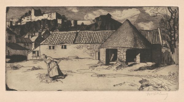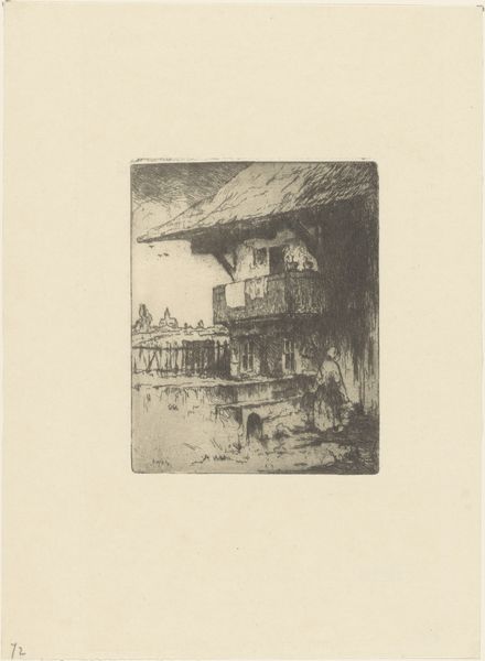 Willem Adrianus Grondhout etched ‘Boerderij’ - that’s ‘Farmhouse’ - using fine lines to build up this humble domestic scene. There's a certain charm in the way the artist coaxes details out of a limited palette; it feels immediate. The texture in the etching is crucial to how we read the image; see how the light catches the rough stones in the foreground? There’s a real intimacy here, and that comes from the close attention Grondhout pays to surface. Take a closer look at the roof. The lines there aren't just describing the shape, they are also the texture. That's the kind of mark-making that suggests the artist really knew what it felt like to touch the rough, thatched surface. It makes me think of Whistler. Grondhout seems to invite us into his world, to share in this quiet observation of everyday life. Ultimately art is a conversation, isn't it? An ongoing exchange of seeing and feeling.