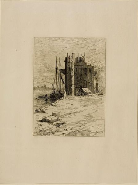 Editor: Here we have Muirhead Bone’s drawing, "Excavating for Central Hall, Westminster." There's no date for it, so it captures a moment frozen in time. I'm immediately struck by how gritty it feels, almost like you can taste the dust and smell the damp earth. The composition, with the massive architecture looming over the excavation site, really emphasizes the scale of the undertaking. What catches your eye when you look at it? Curator: Oh, that "taste of dust" is perfect. For me, it’s always been about the stark contrast Bone draws—not just visually, but conceptually too. Look at the precise lines of the buildings juxtaposed with the chaotic energy of the excavation. It's civilization being built, but also slightly…unbuilt. He’s not just showing us a construction site; he’s hinting at the disruption that comes with progress. Does that make sense, or am I off in the weeds again? Editor: No, it absolutely makes sense. The disruption *is* visible. But I guess I hadn't thought about it in terms of the artist's perspective on progress itself. Was Bone critical of this kind of urban development? Curator: Possibly, or maybe he was just an astute observer of the many layers involved with modern life. Notice how small the workers and the horse are. It's beautiful and devastating simultaneously, you know? There is so much packed into such a sparse piece, and for me, at least, the raw emotion seems strangely unresolved. Editor: That’s a compelling point. I think seeing the drawing that way will influence how I look at similar artworks going forward. Thanks! Curator: And thank *you*! You've helped me see the raw beauty of disruption through fresh eyes. It's all about perspective, isn't it?