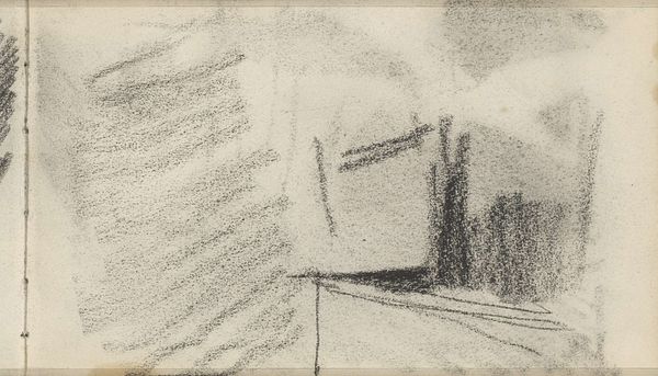 Curator: Oh, this gives me a real sense of power, doesn’t it? It feels so full of speed and energy. What’s your take on this etching? Editor: It's Otto August Kühler’s "Leaning Into It" from 1925, a wonderful example of modernism’s fascination with the machine age. The medium is etching on paper. Curator: Yes! I feel like I can smell the coal and hear the whistle. The composition itself leans—the whole train appears to tilt diagonally. It creates a dynamic effect, almost like it's bursting off the page. Does it make you think of anything specific? Editor: The visual syntax of the work is fascinating. Kühler’s decision to render the train larger-than-life and off-center shifts the viewer’s relationship to space. Observe how the sky is treated almost as an afterthought, a bare scraping of lines, to direct all the visual weight to the locomotive and its implications. It is about materiality. Curator: Materiality—yes, absolutely! The physical presence of that engine, I can feel its vibration in my chest. And you are right. I hadn't picked up on the contrast there with the sky and all the visual focus forced on this great hunk of metal. He’s made it so you cannot miss that fact this is an instrument of great industry! Editor: Indeed, the lines themselves feel industrial, mass-produced almost. The meticulous rendering of the train's mechanics serves as a visual testament to the power of engineering. It is not a stretch to argue that Kühler is engaging with a discourse on modernity itself, illustrating the fusion of man and machine. The choice to do it in grayscale focuses the emphasis even more on materiality. Curator: Thinking about it, the artist even puts the vanishing point just below the train. Everything converges on that force of propulsion. So what is it like looking at it now after our brief exploration of it? Editor: I'm still struck by the work's formal articulation. I’d venture to say that the artist wanted to use the subject matter to deify this mechanical monster by visually re-ordering it to an icon, but the dark medium feels self-effacing—as if it should not fully step out into the light to be completely noticed or agreed with. How about you? Curator: I love that take! It leaves me just marveling at the power of this simple etching, a reminder of when steel ruled the world.