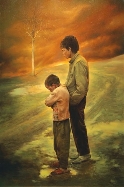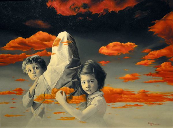 Morteza Katouzian created “The Fall Blossoms” using traditional painting materials and processes. The artist has used fine brushes and blended colors seamlessly to create a hyperrealistic image. It is a compelling piece of art because of its apparent classical influences, which are reminiscent of social realism. The artwork depicts three children in simple clothing, standing against a subtle, blurred background. The somber tones and the expressions on the children’s faces add to the work’s emotional depth. The artist's technique of layering and blending paint creates a soft, almost dreamlike quality, enhancing the sensitivity and vulnerability of the figures. Katouzian masterfully employs the medium to highlight the social issues related to childhood, labor, and poverty, evident in the subjects' modest attire and pensive attitudes. The choice of materials and techniques in “The Fall Blossoms” elevates the artwork beyond mere representation, embedding it with layers of social commentary.