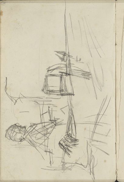 Curator: So, here we have George Hendrik Breitner’s “Stadsgezicht met molens,” or “Cityscape with Windmills,” a pencil drawing from 1880-1882. It's currently held here at the Rijksmuseum. Editor: It's so raw! Like a fleeting thought captured in graphite. The bare minimum needed to convey the essence of…well, windmills, I presume? Curator: Yes, and the surrounding cityscape. What’s compelling is Breitner’s impressionistic leanings, even in this simple drawing. Notice how he prioritizes capturing the feeling of a scene over precise representation. The material is humble, but the vision is quite powerful. Editor: The rapid strokes, the almost skeletal rendition of these mills—they speak volumes about the pace of industrial change. Breitner isn’t just sketching a pretty scene, he’s hinting at the labor tied to those structures, to the very grain they were grinding. And look at how easily these windmills might be replaced by factories… Curator: That's insightful. And consider the context—Breitner belonged to a generation of artists keenly aware of the shifting social landscape of the Netherlands. The city was rapidly transforming, old industries giving way to new, and the role of art was being renegotiated. This piece is a quiet reflection of that tumult. Editor: It feels almost…activist. Breitner’s making the statement with a common pencil. Think of the distribution networks involved – graphite mines, timber for pencils, paper mills churning away… all feeding into a seemingly simple artwork which is actually embedded with material history! Curator: Fascinating way to read the work. His choice of such a readily available medium definitely democratizes the image-making process, bringing the artist's view of the city into wider circulation, compared to the more costly painting or printmaking techniques. Editor: Absolutely. And even now, Breitner's sketchbook reveals itself – these rapid markings give a sense of how he moved between working life and his studio; that liminal state shaped the man! Curator: It’s pieces like this that really remind us how drawings function in an artist's broader practice. Not simply studies or preparatory works, but legitimate expressions in themselves. Editor: Right. Well, I definitely look at windmills – and sketchbooks - differently now!