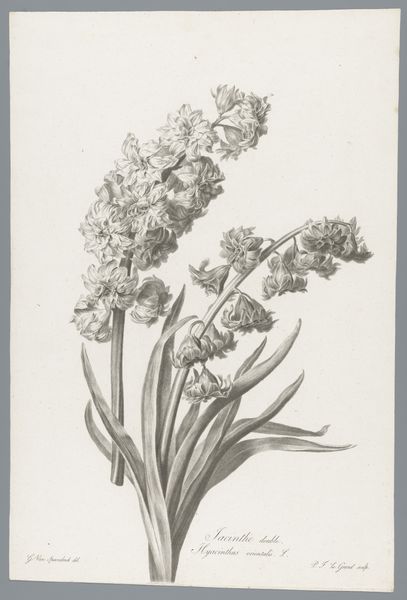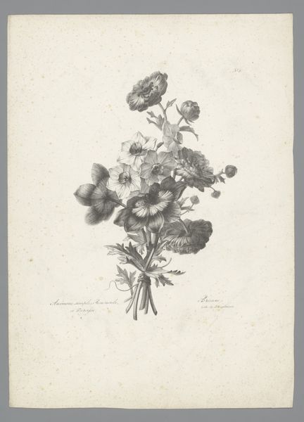 Pierre François Legrand's "Knolanemoon" is a study in contrasts, rendered with graphite. The botanical drawing balances the detailed and the delicate. Note how the artist focuses on the dense textures of the flower heads against the stark, negative space of the background. Each petal and leaf is meticulously delineated, creating a complex interplay of light and shadow. Legrand’s almost scientific precision destabilizes our understanding of natural beauty through a detailed, almost clinical depiction. This technique invites us to reconsider our relationship with the natural world, viewing it not just through the lens of romanticism, but also through the objective gaze of scientific scrutiny. The drawing's detailed precision reveals how close observation can challenge aesthetic conventions.