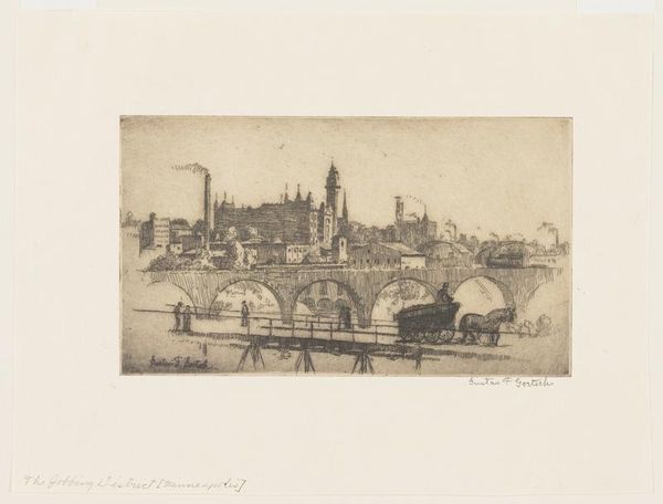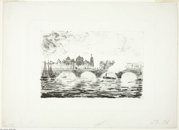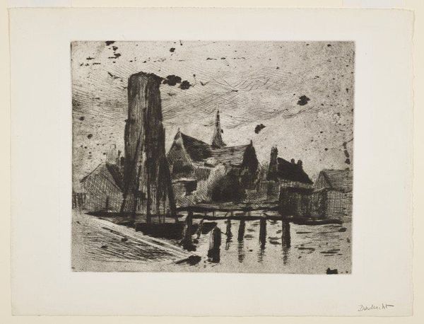 Philip Little created "Salem - Waterfront," a print on paper, sometime around 1910. Here, the artist uses closely packed lines and a muted palette to depict a harbor scene, evoking a sense of quiet industry. The composition is divided horizontally by the waterline, with the upper half showing the tangible, solid forms of ships and buildings. This contrasts with the lower half where reflections become abstract dashes and strokes. The materiality of the etching technique enhances this effect, as the ink catches on the textured paper, blurring the distinction between the real and the reflected. Little uses a semiotic play with visual components and cultural codes. The reflections, as signs of duplication, not only represent visual phenomena, but also challenge fixed meanings. The work destabilizes the established category of representation itself, suggesting that what we see is always a mediated, fluid interpretation. Consider the structure of this print: the lines, though representational, function as an exploration of form, and reflect ongoing questions about how we perceive and interpret our environment.