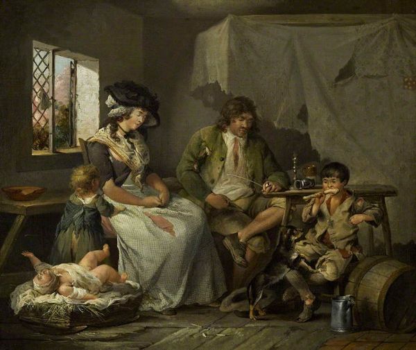 Adolph Menzel made this pastel drawing, titled "In a Railway Carriage (After a Night's Journey)," with no known date. The image captures a moment of quiet intimacy and social observation within the confines of a 19th-century railway carriage. Menzel, a keen observer of modern life in Germany, uses the setting of the railway to comment on contemporary society. Mass transit was still fairly new. The composition highlights the proximity of strangers sharing a confined space, offering a glimpse into the social dynamics of a rapidly industrializing nation. The sleeping man, possibly a worker, and the woman gazing out the window evoke the diverse experiences of travelers in this new era of mobility. The rise of railway travel changed social relations across Europe. Scholars often use railway company archives, timetables, and passenger accounts to better understand the history of modern society. The image then becomes a meditation on the changing landscape of social interaction in 19th-century Germany.