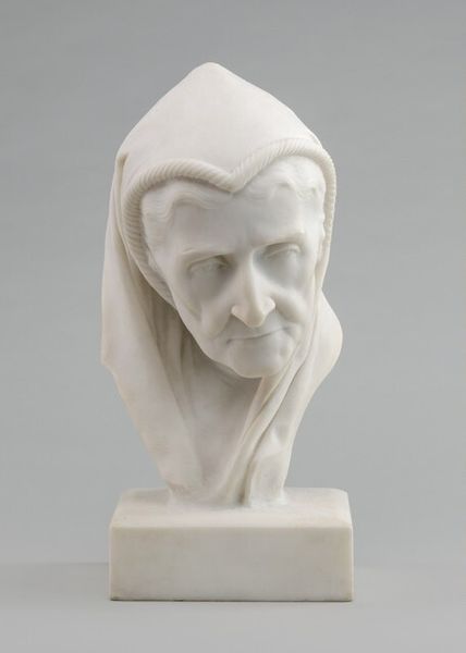 Editor: Here we have Sir Joseph Edgar Boehm's marble bust of Mrs. Wynn Ellis, a portrait frozen in time. The details in her face, the fabric…there's a quiet dignity to it all. What draws you in when you look at this piece? Curator: The intimacy, I think. Boehm captures not just likeness, but a lived life. Do you notice the slight asymmetry? It keeps it from being merely academic. Makes me wonder about her stories, her secrets etched into that marble. Editor: It does feel very personal. I hadn't noticed the asymmetry before. It's subtle, but makes a difference. Curator: Exactly. It's a conversation, isn’t it? Boehm speaks, Mrs. Ellis whispers, and we lean in to listen. Editor: I'll definitely carry that with me as I continue to study the sculpture. Thanks for pointing that out!